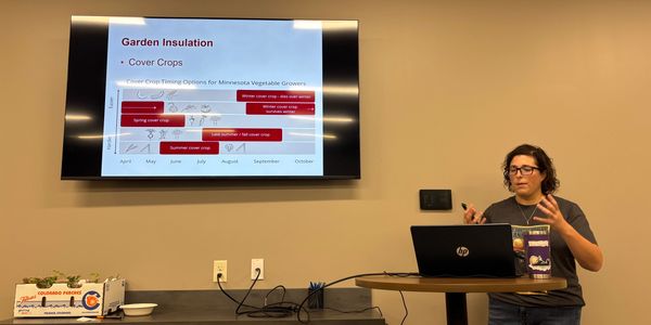 At our garden club, we host expert speakers to share the latest techniques in gardening and provide valuable horticulture advice. Our sessions have covered a variety of topics for gardening enthusiasts, including effective techniques to preserve your fall harvest by drying and canning vegetables. straw bale gardens with Joel Karsten, bee keeping with Gregg Hermerding and John Jarvela, maple syrup production by St. Johns University, organic beef farming from Thousand Hills, and animal biology presented by naturalist Stan Tekiela. In this picture, Kristina Kjellberg from the University of Minnesota. taught us how to put the garden to bed for the winter. If you would like to suggest an expert speaker or offer a presentation to our club, please reach out.