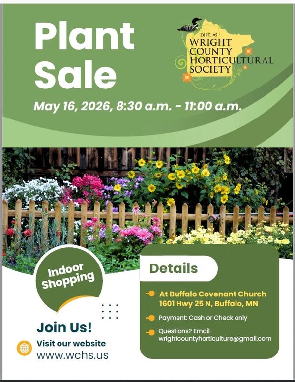 We meet monthly from March to December, typically at Buffalo Covenant Church (though we are not a religious organization). Our garden club is dedicated to sharing knowledge of horticulture and new gardening techniques among gardening enthusiasts. We organize the club projects, such as our popular plant sales, and decide on upcoming expert speakers for our meetings. In December, we come together for a festive holiday potluck for our members. Meetings, including those with expert speakers, the plant sale, and the holiday party, are generally held at the church, while our garden tours take place at locations throughout Wright County and Minnesota.