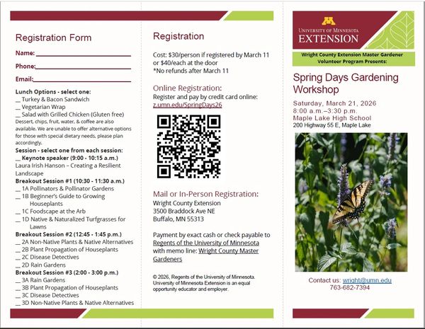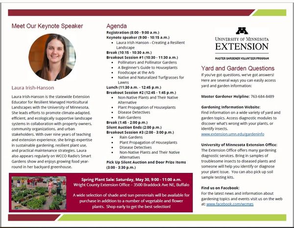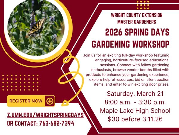 Join the Wright County Extension Master Gardeners for their spring workshop! Join them for an exciting full-day workshop featuring engaging,...